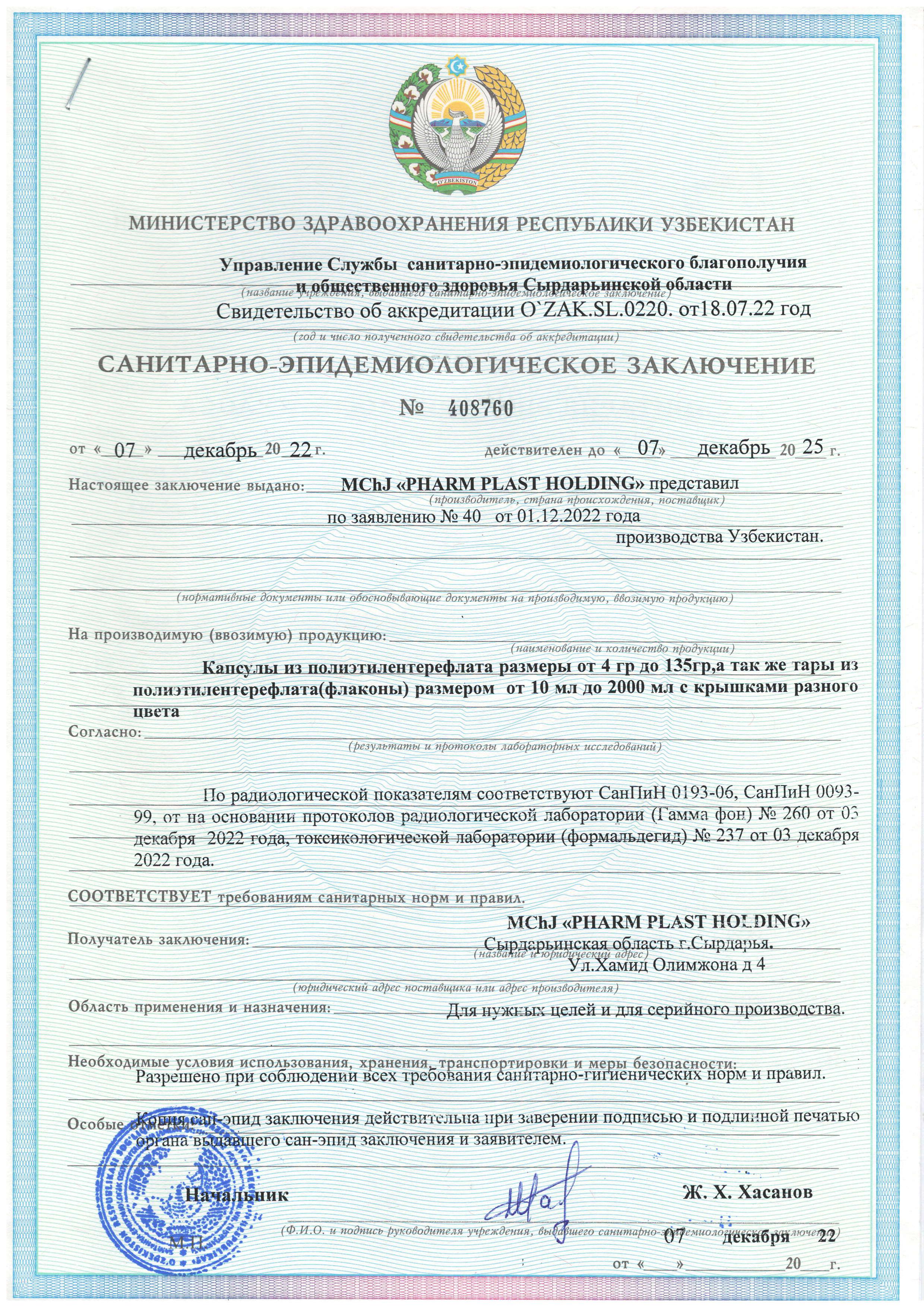 Основанная в 2015 году в Узбекистане, ООО “PHARM PLAST HOLDING” расположен в самом центре Сырдарьинской области, которая имеет самую высокую динамику производства среди 12 регионов Узбекистана.