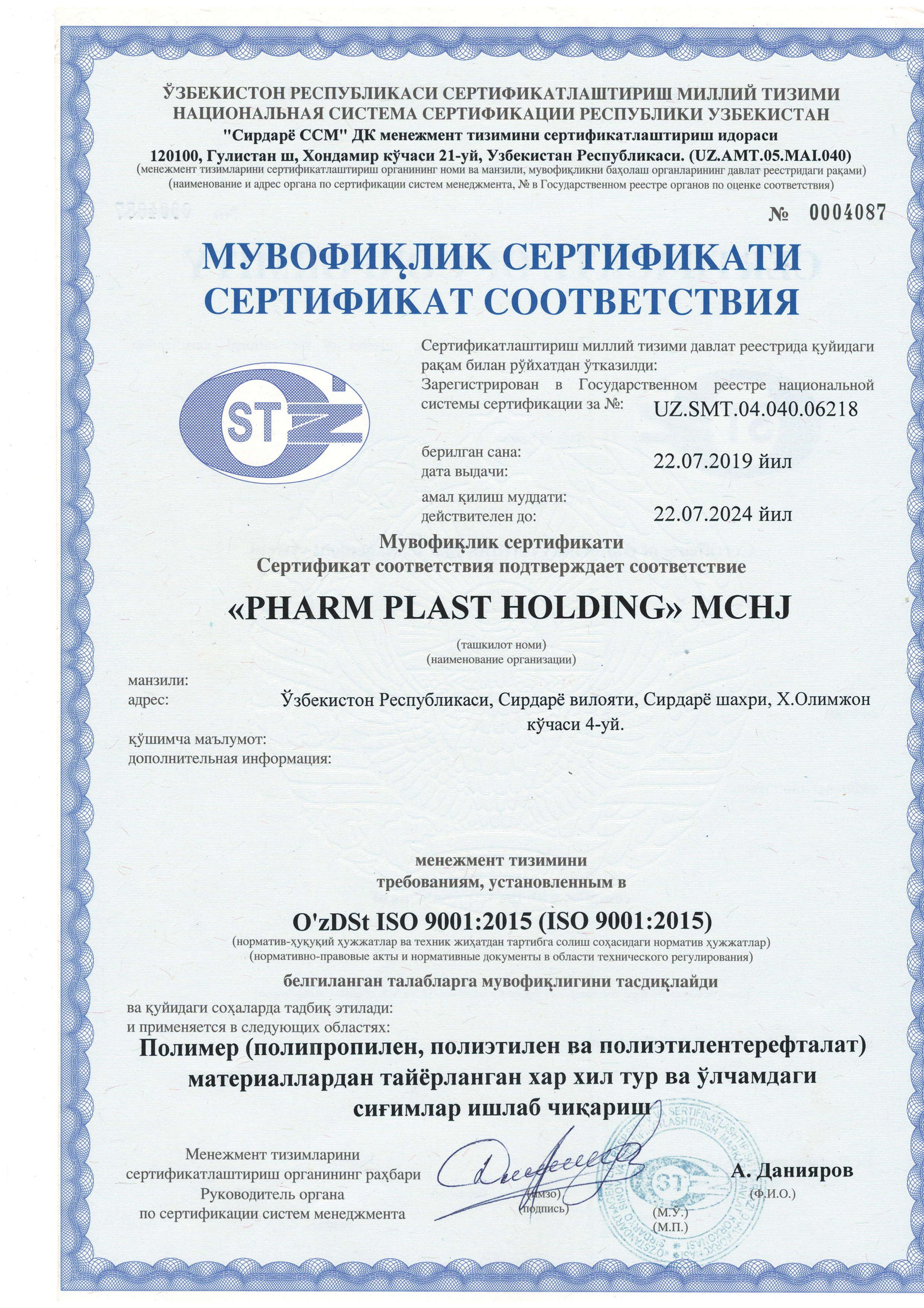 Основанная в 2015 году в Узбекистане, ООО “PHARM PLAST HOLDING” расположен в самом центре Сырдарьинской области, которая имеет самую высокую динамику производства среди 12 регионов Узбекистана.